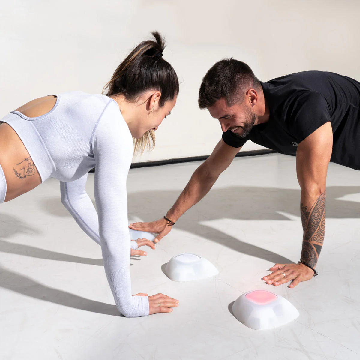 ROX has sound, which develops acoustic perception and also vibration. For example, when using the balance feature, it gives the person instant feedback when unbalancing by vibrating.It also has a stronger connection between the ROX and the mobile allowing up to 80m, and a connection of up to 24 devices compared with a maximum of 12 from the competitors.The tap sensor of ROX and ROXPro has 12 levels of sensitivity that lets you decide if you want a gentle touch or a punch